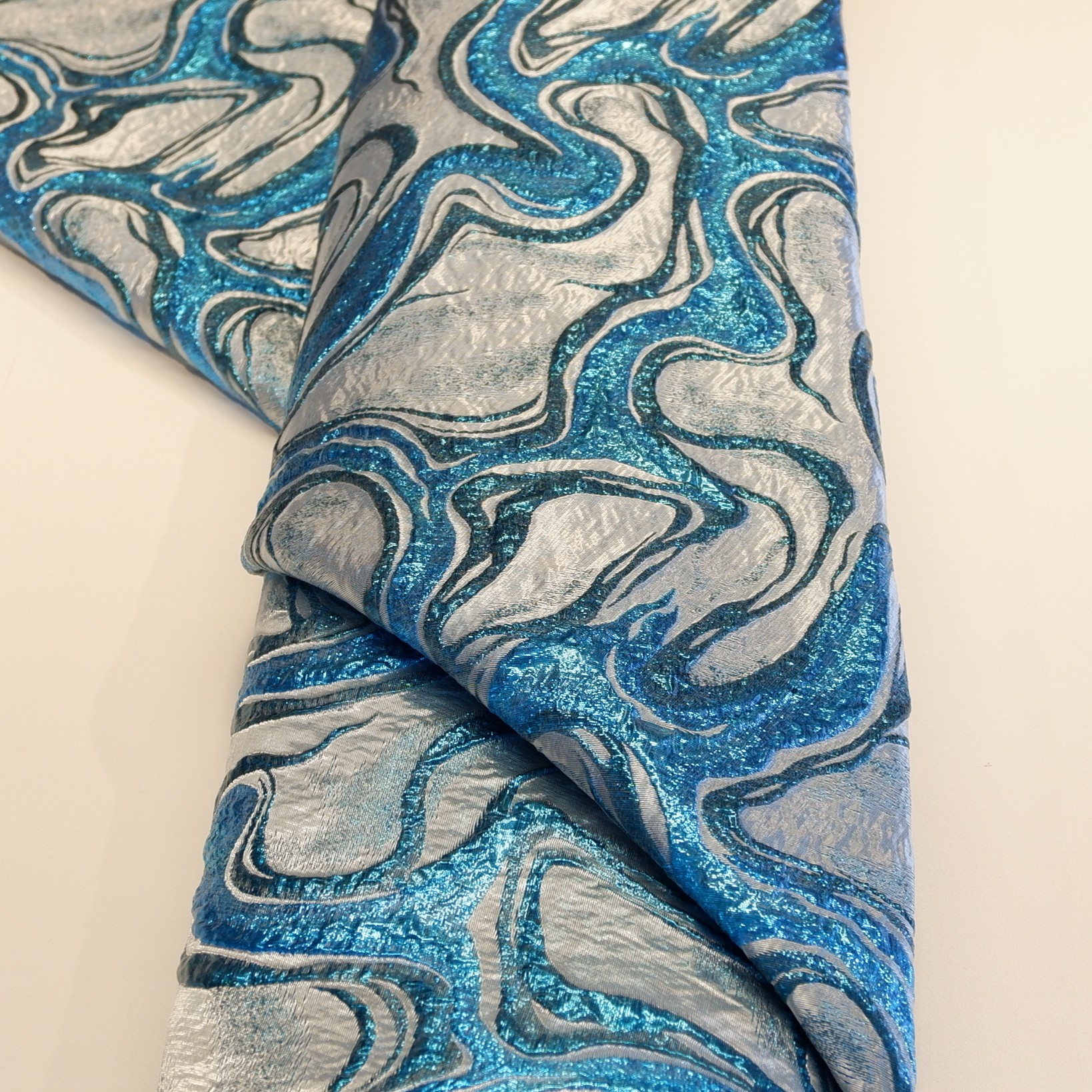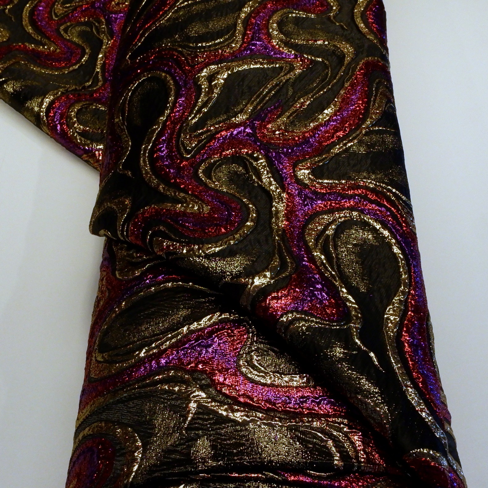 Deze Jacquard Velurith is perfect voor mode-items zoals blouses, rokken en jurken, maar ook voor carnavalskleding, dans- en theaterkostuums, en decoratieve materialen zoals kussens en tasjes.