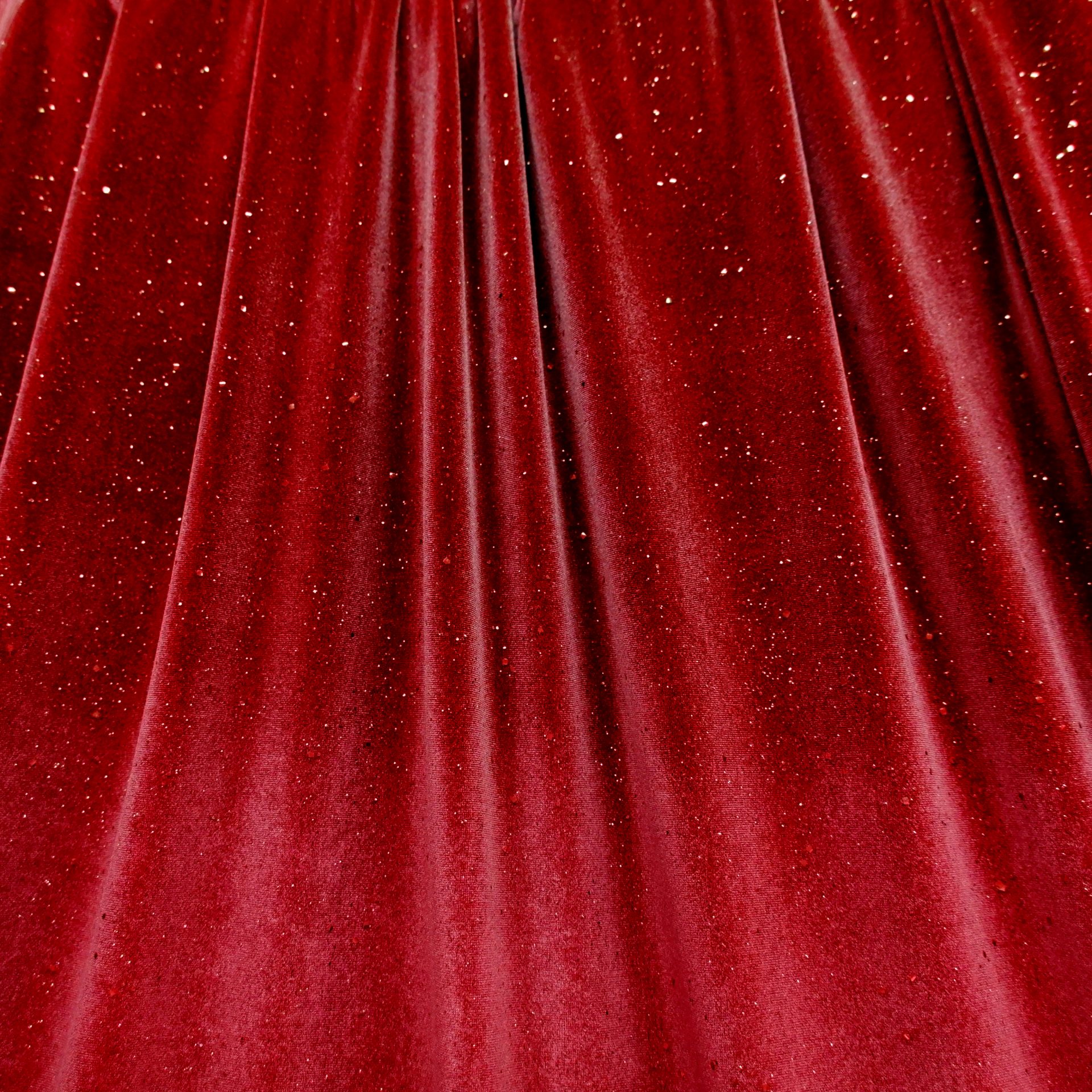 Wat deze velours extra bijzonder maakt, zijn de verfijnde glitteraccenten die in de stof zijn verwerkt. Deze geven een sprankelend effect zonder te overheersen, waardoor de stof een chique en feestelijke look krijgt. Ideaal dus voor het maken van feestkleding, carnavalsoutfits, theaterkostuums en danskleding. Dankzij de elasticiteit beweegt de stof soepel mee, wat essentieel is voor performers en dansers die comfort en duurzaamheid nodig hebben tijdens intensief gebruik.